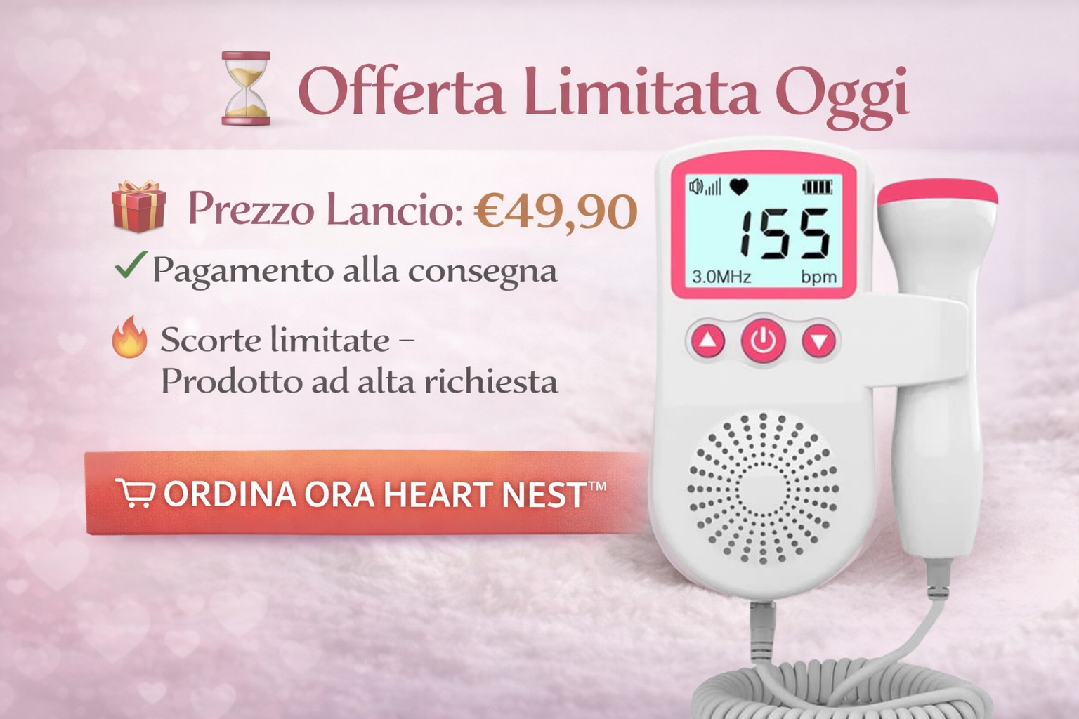 👶 HEART NEST™ Ascolta il battito del tuo bambino. Quando vuoi. Da casa.